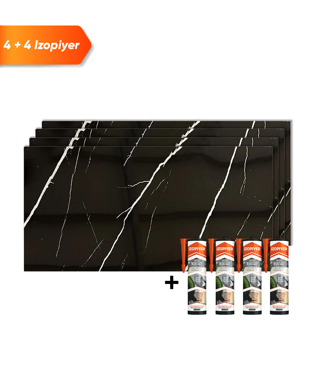 The Black Lightning model brings the beauty of natural marble with subtle grey veining into your home. Perfect as a stylish backsplash in kitchens or bathrooms – modern, hygienic, and easy to clean.