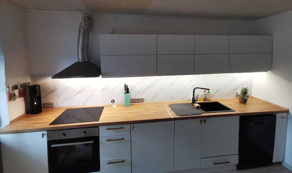 The panels can be glued directly to the substrate with mounting adhesive. Cutting is possible with a utility knife, jigsaw, or circular saw. Installation is clean, quick, and also easy for DIY users.