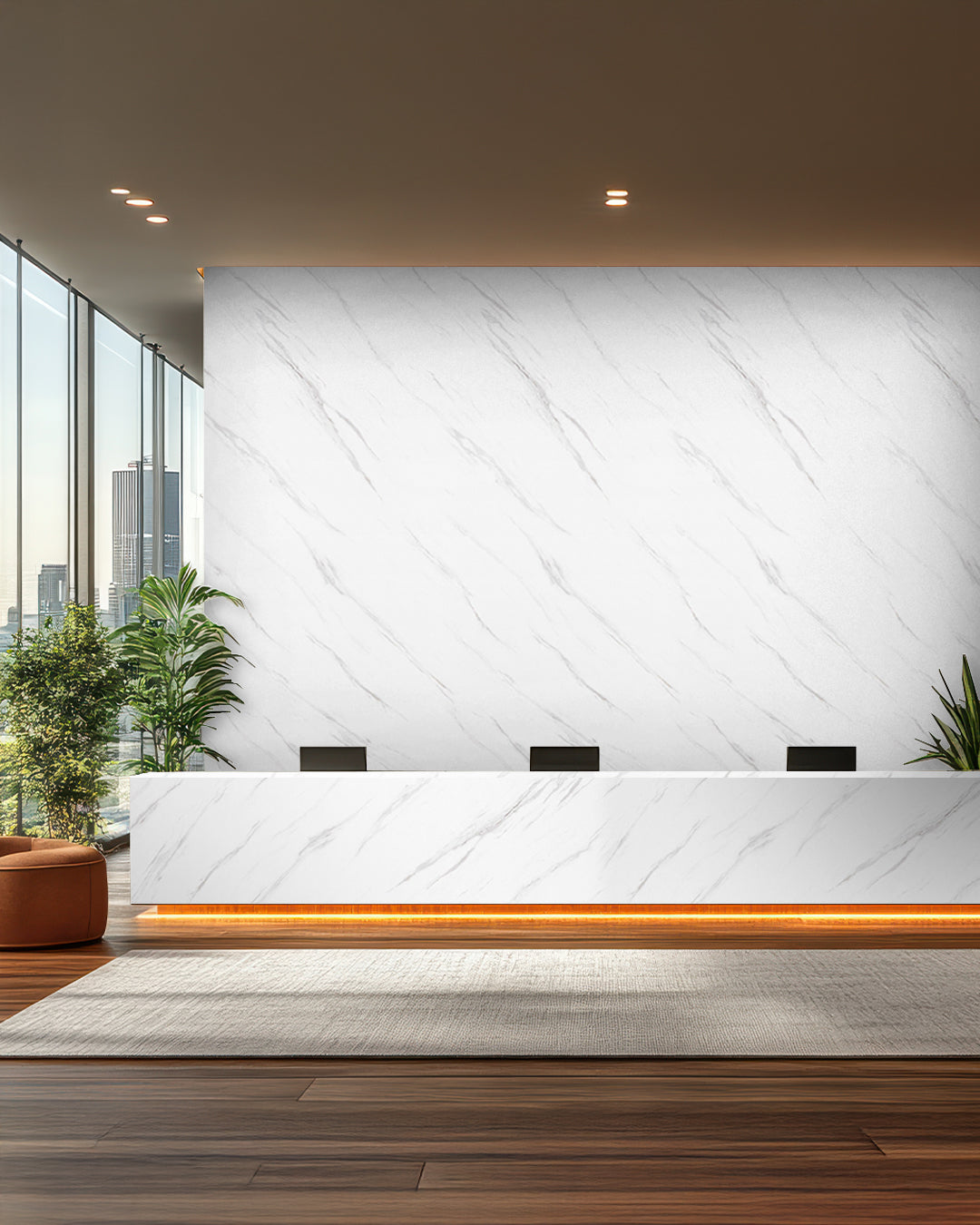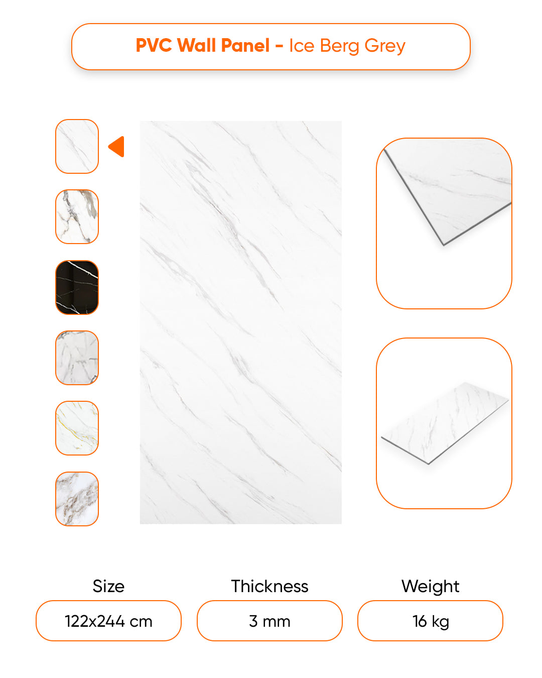 Transform your walls with the noble shine of Ice Berg Grey. This large-format PVC marble panel combines the clear beauty of white natural marble with subtle grey veining – perfect for those who seek modern design with classic sophistication.