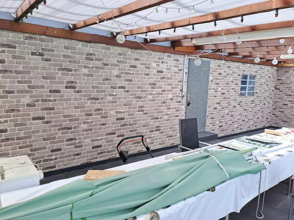 - Surface: 3D brick structure with gray natural stone look