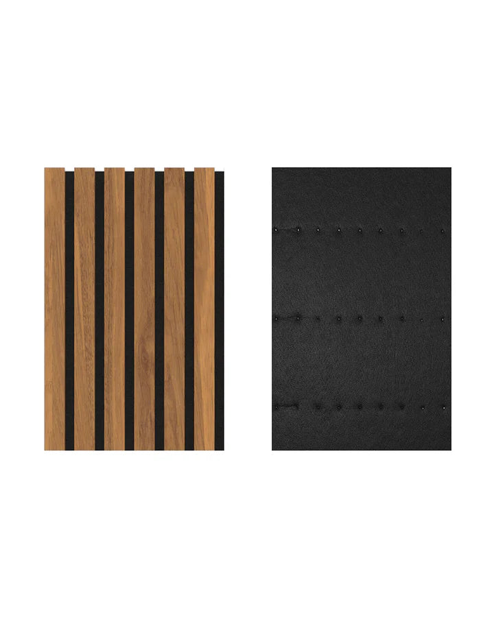Transform your space with our wood-veneered acoustic wall panels in luxurious walnut look. These premium panels are designed to stylishly enhance both residential and commercial interiors – whether as complete wall cladding or as part of an integrated acoustic system. The combination of natural wood appearance and functional sound insulation makes them the perfect choice for sophisticated interiors.